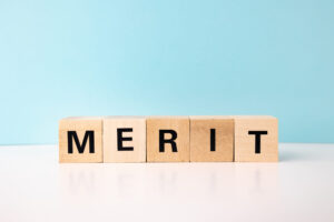 メリットの文字と水色背景