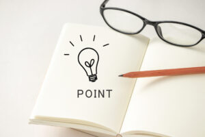 重要事項をまとめたノートとメガネ。受験、勉強